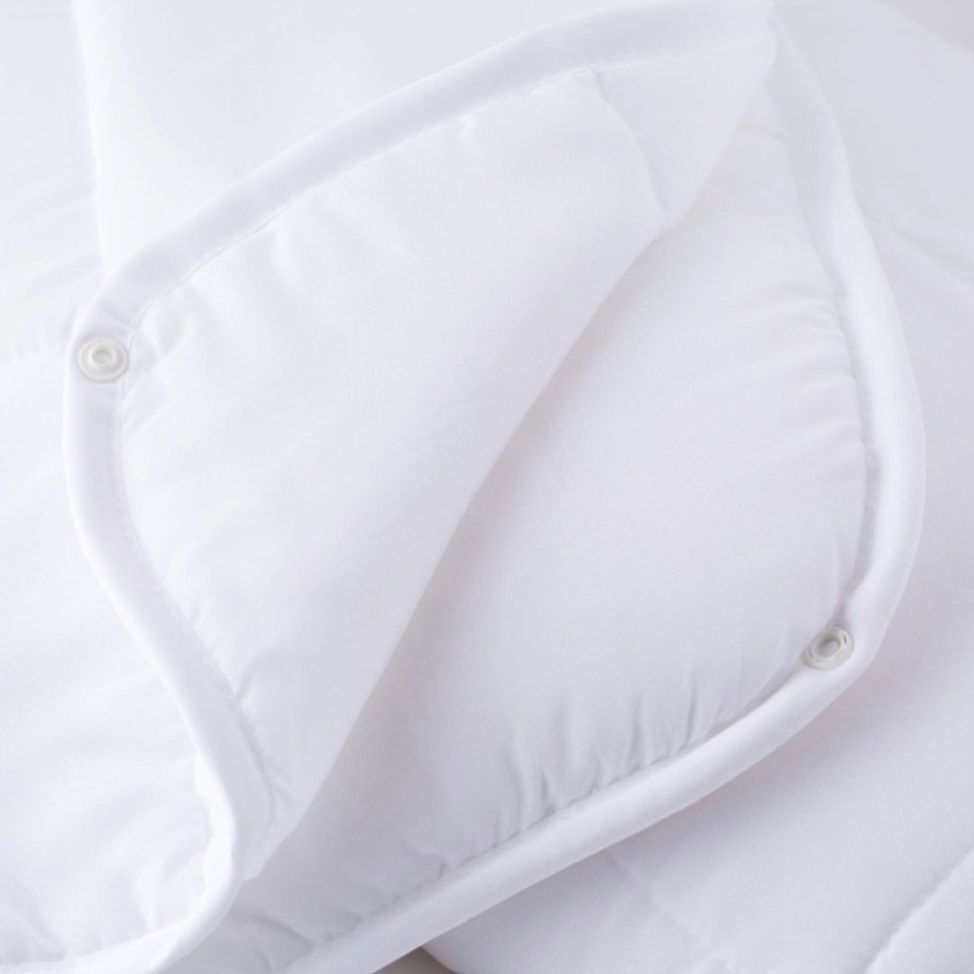 Il sistema di bottoni "clip-clap" non solo rende semplice unire o separare i due strati, ma permette anche di adattarsi rapidamente alle variazioni climatiche. Cambiare configurazione è veloce e senza sforzo: in pochi minuti, puoi passare da un caldo abbraccio invernale a una fresca copertura estiva.