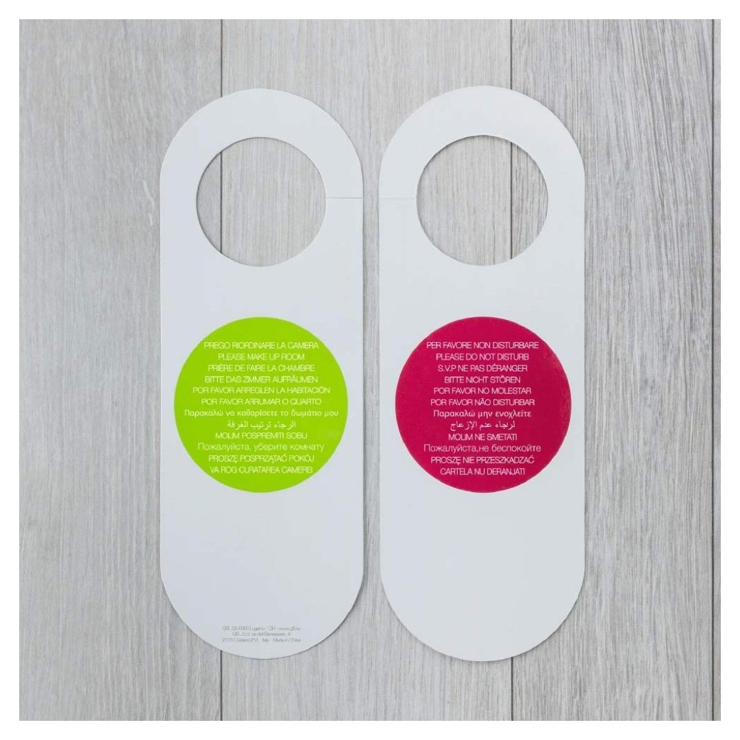 I cartellini da appendere alle maniglie delle porte sono l'accessorio pratico e professionale per garantire comunicazione chiara e discreta tra ospiti e personale delle strutture ricettive.