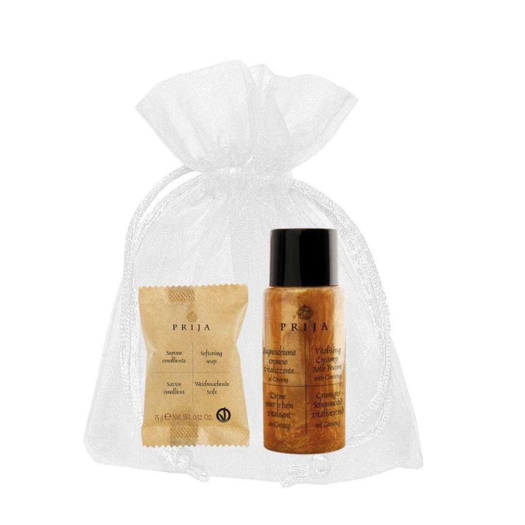 Regala ai tuoi ospiti un'esperienza di lusso con il Kit di Benvenuto Prija, confezionato in raffinati sacchetti di organza. Ideale per hotel, B&B e strutture ricettive che vogliono offrire un'accoglienza esclusiva e distintiva.